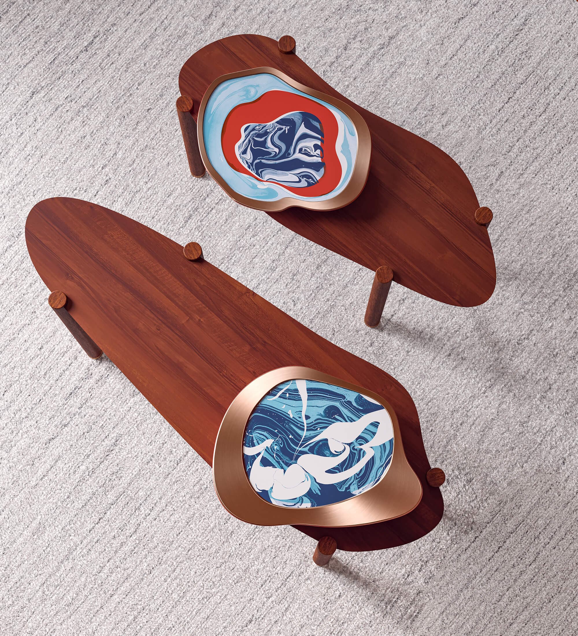 The sculptural Ka’Ve tables are designed to be statement pieces for any room, with their shapes drawn directly from co-founder Eda Akaltun’s fluid artwork.