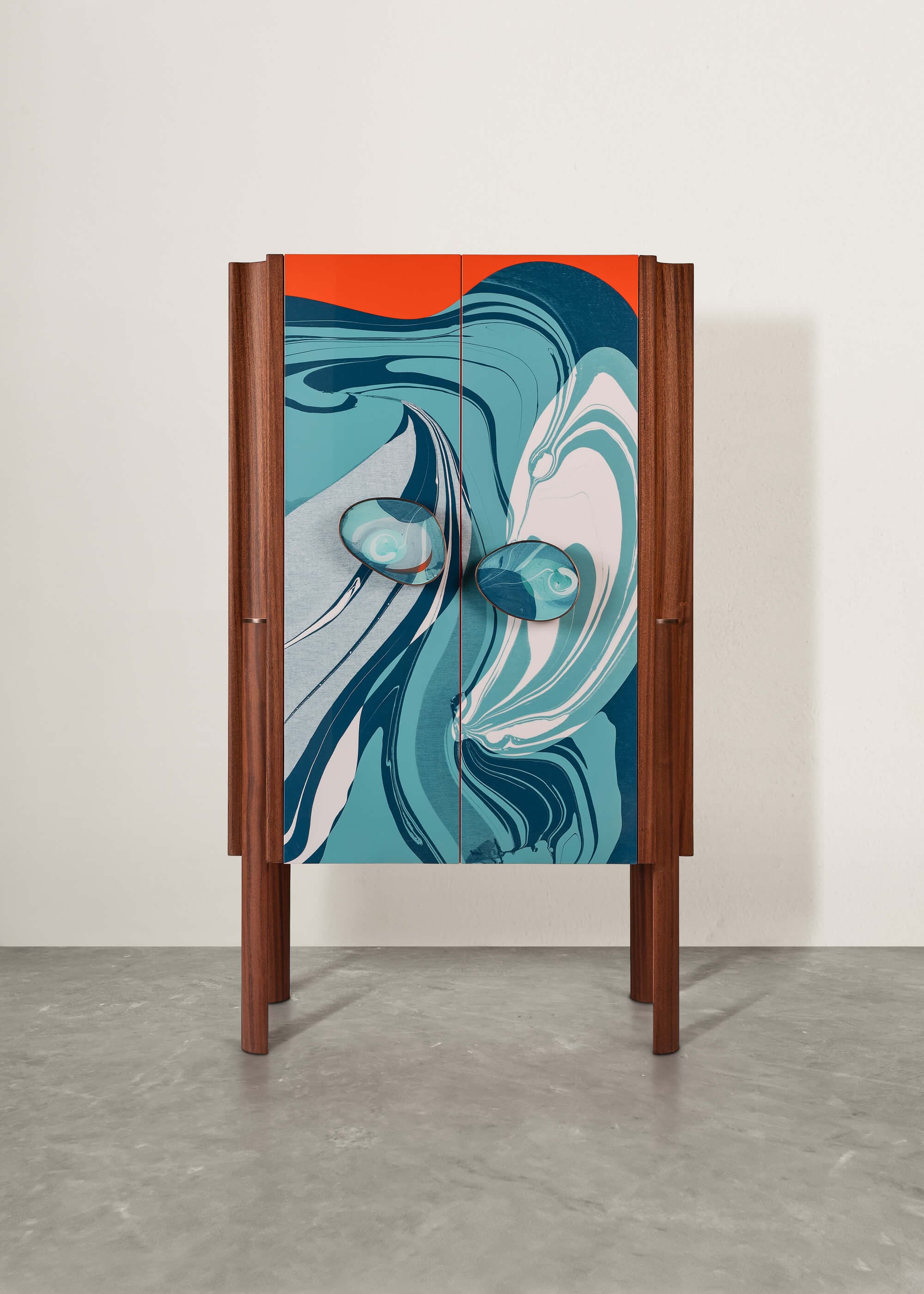 DescriptionLimited edition, handmade drinks cabinet with a folding bar table and a soft closing drawer.